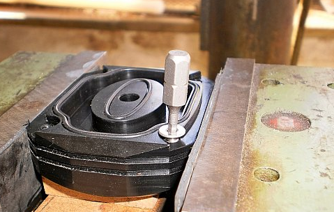 Με την οπή έτοιμη, αρματώνουμε μια μικρή μανέλα, με το κολαούζο του σετ μας, και προσεκτικά το τοποθετούμε τελείως κάθετα προς το κομμάτι μας.