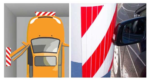 Αυτοκόλλητο αφρώδες προστατευτικό με εγκοπές για να προσαρμόζεται σε τοίχους ή γωνίες κάθε μορφής με κόκκινες και λευκές ανακλαστικές λωρίδες