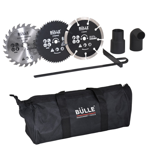 Συνοδεύεται με 3 δίσκους κοπής (1x24TCT, 1x60TCT, 1 Diamond Blade), πλαϊνό οδηγό και υφασμάτινη θήκη μεταφοράς