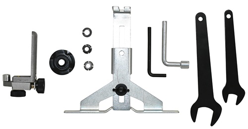 Συνοδεύεται με 3 σφυγκτήρες (τσοκ) Φ6, Φ6,35 (1/4”), Φ8, σετ οδηγών κοπής κλειδιά μονταρίσματος.