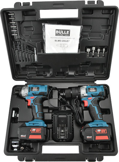 Σετ κρουστικό δραπανοκατσάβιδο και παλμικό κατσαβίδι 18v 2*2Ah Bulle