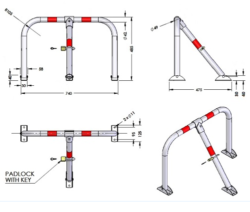 Η μπάρα στάθμευσης είναι αξιόπιστη, στιβαρή, με λουκέτο και 3 πόδια.
