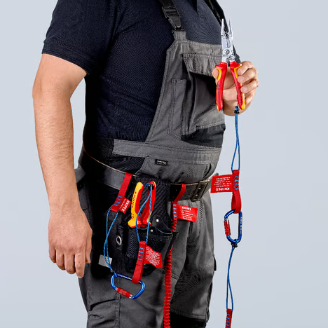 δυνατότητα σύνδεσης με τα εργαλεία KNIPEX που διαθέτουν σύστημα προστασίας από πτώση, ακόμη και χωρίς καραμπίνερ ασφαλείας