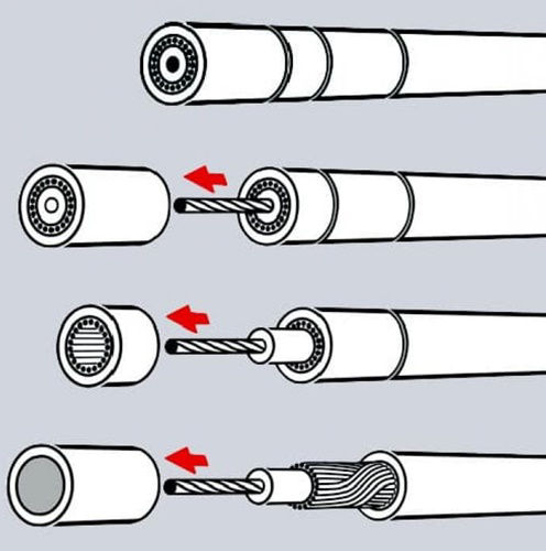 για την απογύμνωση της εξωτερικής επένδυσης, της μόνωσης και του αγωγού με μια μόνο κίνηση
