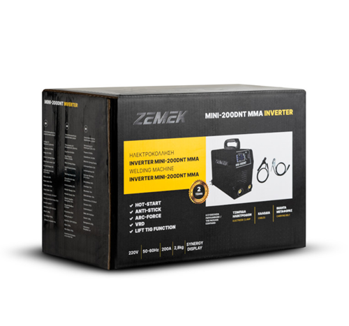 Zemek 200dnt Mini MMA ηλεκτροκόλληση inverter με ισχύ ρεύματος εξόδου 20-200Α, στεγανότητα IP21S, κλάση μόνωσης F.