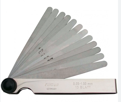 Διαθέτει 13 λεπίδες (0,05-0,10-0,15-0,20-0,25-0,30-0,40-0,50-0,60-0,70-0,80-0,90-1,00) με υποδιαιρέσεις από 0,05 χιλιοστά έως και 1 χιλιοστό.