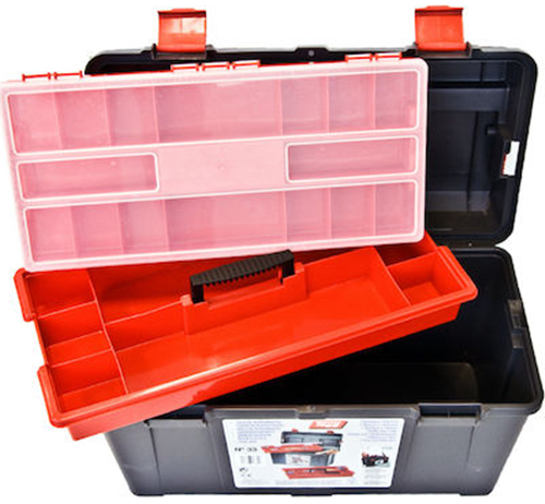 Εργαλειοθήκη από ανθεκτικό πλαστικό με εταζέρα και ταμπακιέρα