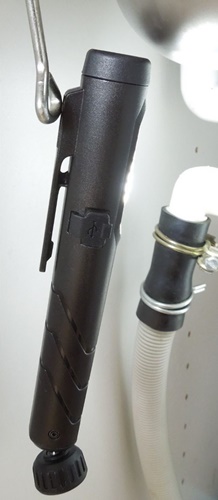Φωτιστικό στυλό με εστιασμένο φως στο επάνω μέρος και φως εργασίας με φαρδύ άπλωμα στο πλάι.