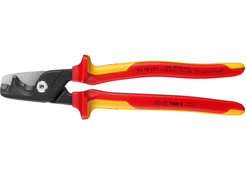Μεγάλη δυνατότητα κοπής: κόβει συμπαγή καλώδια χαλκού ή αλουμινίου έως 35 mm², πολύκλωνα καλώδια έως 70 mm² και λεπτόκλωνα καλώδια έως 120 mm²
