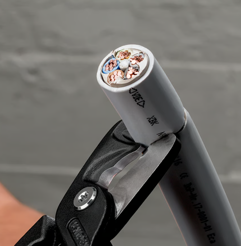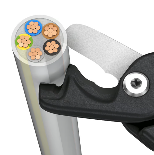 Άρθρωση με υψηλό υπομόχλιο, μακριές λαβές και βέλτιστες κοπτικές ακμές: η κοπή γίνεται εμφανώς ευκολότερα σε σύγκριση με τους κλασικούς, μικρότερου μεγέθους κόφτες καλωδίων