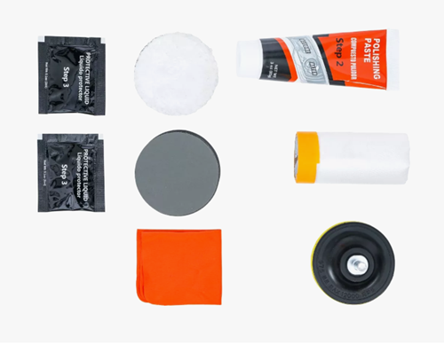 Ο αποχρωματισμός, η τύφλωση και οι λεπτές γρατσουνιές αφαιρούνται πρώτα σε τρία απλά βήματα, προτού οι επεξεργασμένες επιφάνειες γυαλίστηκαν και σφραγιστούν μόνιμα