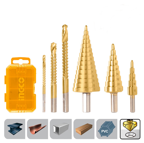 Τρυπάνια Κώνικα και Φρεζοτρύπανα 4-32 mm Σετ 6 τεμ.INGCO