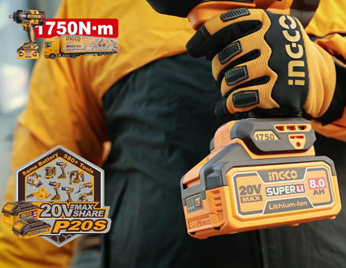 Κρουστικό Μπουλονόκλειδο Μπαταρίας 20V Li-Ion SOLO 1750-2100Nm INGCO