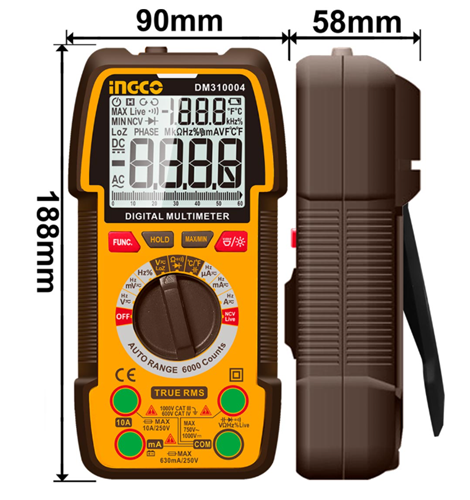 Ψηφιακό Πολύμετρο 1000V True RMS με Μέτρηση AC/DC INGCO