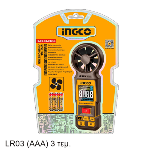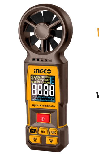 Ψηφιακό Ανεμόμετρο ±2% +0.5m/s στα 0.80~40m/s Έγχρωμη LCD οθόνη με οπίσθιο φωτισμό INGCO