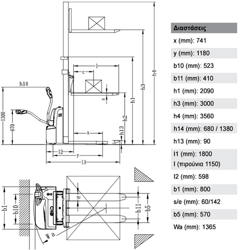 Συνολικό ύψος περονοφόρου 3560mm με ανεβασμένα πιρούνια (h4)