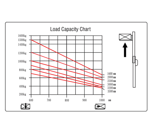 Όταν το ύψος ανύψωσης του περονοφόρου είναι μεγαλύτερο από 1600 mm, η μέγιστη ικανότητα φορτίου είναι μικρότερη από την ονομαστική ικανότητα. Λάβετε υπόψιν το ακόλουθο διάγραμμα της φωτογραφίας με αναφορά στα ονομαστικά φορτία 1500 kg .