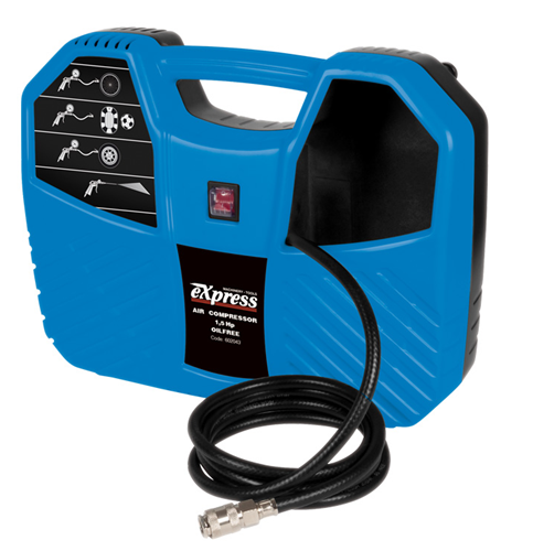 Αεροσυμπιεστής φορητός μικρού όγκου και βάρους, χωρίς αεροφυλάκιο, κεφαλή OIL FREE (χωρίς λάδι), brush motor, συνεχούς ροής κατάλληλος για ελαφρές ερασιτεχνικές χρήσεις μικρής διάρκειας (κυρίως για φούσκωμα).