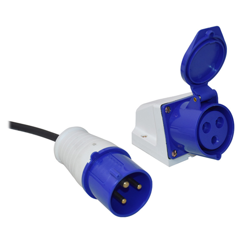 Καλώδιο 5 μέτρα 3x2,5mm2 με φις βιομηχανικού τύπου 32Α & πρίζα τοίχου 32Α