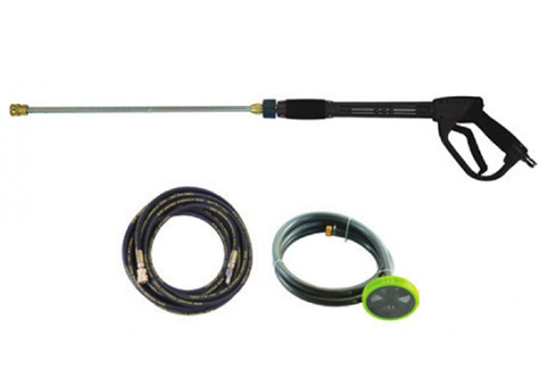 Με πλήρη εξοπλισμό: επαγγελματικό πιστόλι με σκανδάλη ασφαλείας,σωλήνα υψηλής πίεσης 8 μέτρων - BRAIDED, σωλήνα αναρρόφησης απορρυπαντικού 1 μέτρο , ακροφύσια (0°, 25°, 40° και μπεκ απορρυπαντικού), ακροφύσιο σύνδεσης νερού, σωλήνας 3 μέτρα αναρρόφησης από δεξαμενή με φίλτρο