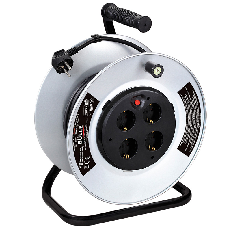 Μπαλαντέζα καρούλι ρεύματος μεταλλικού στροφείου με καλώδιο H05VV-F 3X1,5mm² 50m,4 πρίζες σούκο,θερμικό προστασίας απο υπέρταση και μέγιστη τροφοδοσία 3000 Watt
