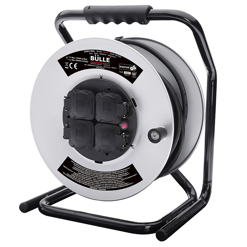 Μπαλαντέζα καρούλι ρεύματος μεταλλικού στροφείου με καλώδιο H05VV-F 3X2,5mm² 25m,4 πρίζες σούκο,θερμικό προστασίας απο υπέρταση και μέγιστη τροφοδοσία 3600 Watt