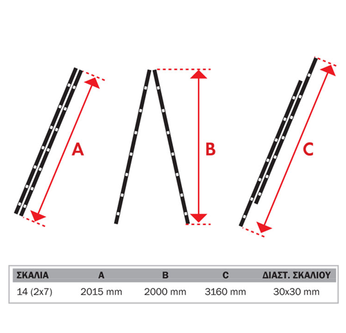 Σκάλα διπλή επεκτεινόμενη 2x7 14 σκαλιά Bulle