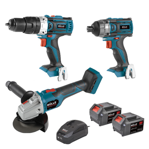 Σετ 3 εργαλείων κρουστικό δραπ/δο-παλμικό κατσαβίδι-γωνιακός τροχός 18V 2*4Ah Bulle
