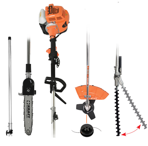 Πολυμηχάνημα Κήπου Βενζίνης 4 σε 1 με Κινητήρα 52 cc, 3HP, και Εξαρτήματα Θαμνοκοπτικού, Κονταροπρίονου με Ρυθμιζόμενη Κλίση Κεφαλής, Ψαλίδι Μπορντούρας, Προέκταση 100cm
