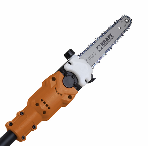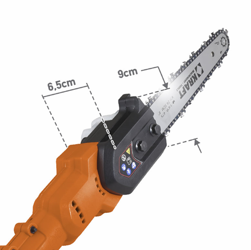 Επαγγελματικό κονταροπρίονο μπαταρίας KRAFT νέου σχεδιασμού , περιορισμένου όγκου με τηλεσκοπικό μηχανισμό , πολύ ελαφρύ μόλις 3 kg ,ευέλικτο, παραγωγικό με στιβαρή μεταλλική κατσκευσή μειώτηρα για διευκόλυνση των κοπών ακόμα και στα πιο στενά σήμεια .