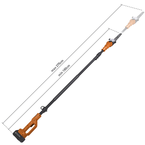 Τηλεσκοπικό κονταροπρίονο μπαταρίας 21V με δύο μπαταρίες 4Ah,αυτόματη λίπανση,λάμα 200mm,μήκους απο 1,8 έως 2,75 μέτρα και βάρους 3,0 kg