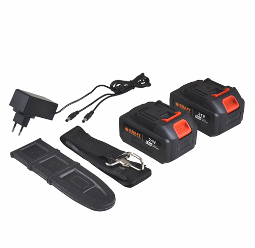 Συμπεριλαμβάνει: Ιμάντα ανάρτησης, Κλειδία συναρμολόγησης, Θήκη λάμας, Φορτιστή 2 μπαταριών και 2 Μπαταρίες Li-ion 21V 4.0Ah .