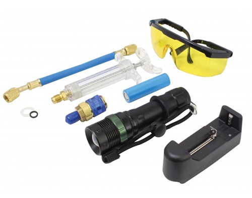 Ένα εξειδικευμένο σετ με λάμπα UV σχεδιασμένο να ανιχνεύει διαρροές κλιματισμού