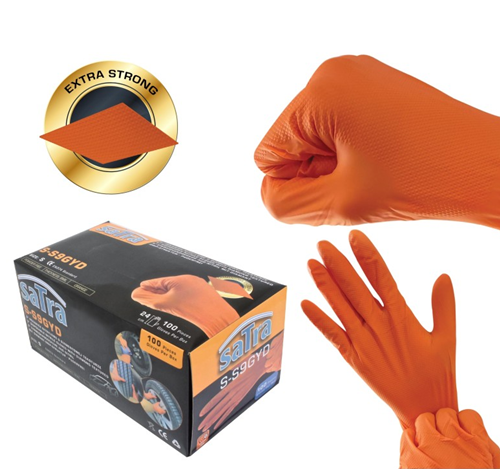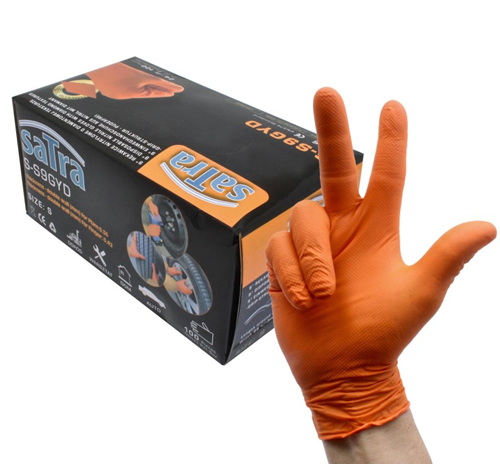 Γάντια νιτριλίου μιας χρήσης σε μέγεθος small, σχεδιασμένα για να προστατεύουν τα χέρια από χημικά, λάδια, υγρασία και βρωμιά.